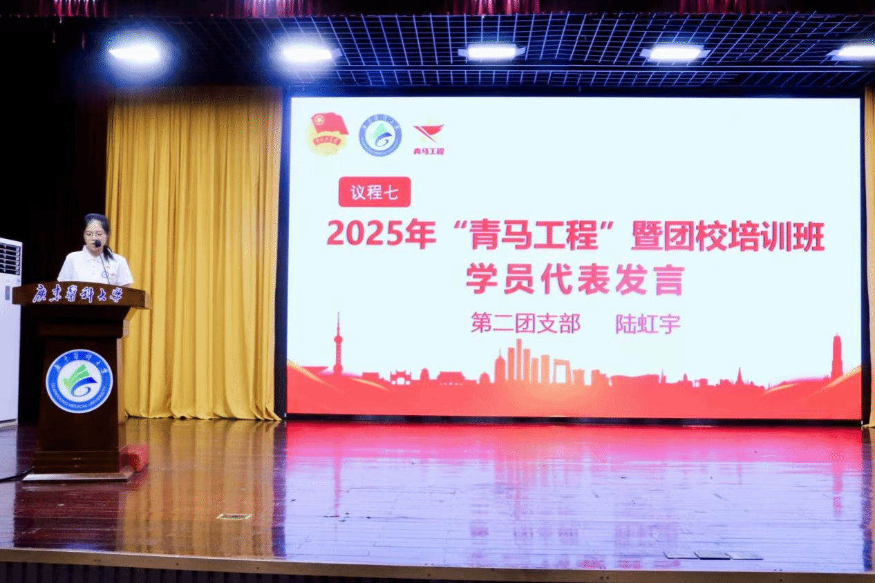 学校团委陈炳权书记为培训班授班旗并做总结讲话。陈书记强调了“青马工程”暨团校培训在培养、锻造青年人才队伍中的重要意义和作用,指出作为医学高校的青年骨干,要把青春赛道与人民健康紧密相连,成长足迹与强国征程同频共振。并对新学员们提三点希望:一是做政治坚定的追光者。二是做本领过硬的实干家。三是做服务人民的奉献者。