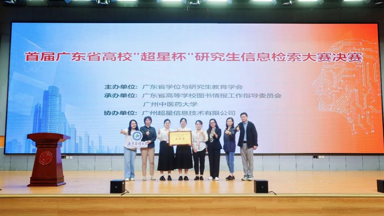 2025年10月31日,由广东省学位与研究生教育学会主办、广东省高等学校图书情报工作指导委员会和广州中医药大学共同承办、广州超星信息技术有限公司协办的首届广东省高校“超星杯”研究生信息检索大赛在广州中医药大学圆满收官。来自省内18所高校的研究生团队历经校内选拔赛与省级初赛层层筛选,围绕“数海寻真・AI领航”主题,展现了人工智能时代我省研究生卓越的信息检索能力与科研创新素养。beat365体育官网护理学院研究生庞景珍、陈锦玲、陈天凤组成的团队凭借专业的检索能力、扎实的学术素养及高效的团队协作斩获二等奖,图书馆管进、陈文凯,护理学院王萍老师获“优秀指导教师奖”。