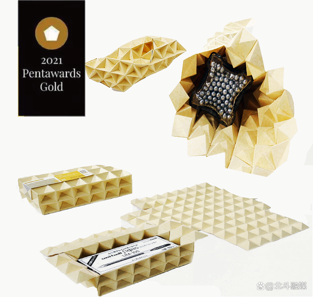 团队师生的研究成果《U-BOX关于集约型快递包装的研究》荣获世界顶级包装设计大奖—2021Pentawards世界包装设计大奖金奖。获奖作品是在可持续设计理念下,进行的一种全新的快递绿色低碳包装研究,在保护商品完好送达消费者手中的前提下,最大限度的节省了包装材料和降低了随之产生的碳排放。包装材料的设计选用可降解的纸基材料进行纸浆模塑工艺加工造型。创新型的快递包装形态设计,不但具有节约环保的功能性,造型也随类赋形、灵活多变,是将集约型设计理念运用于社会生活的创新型设计研究。
