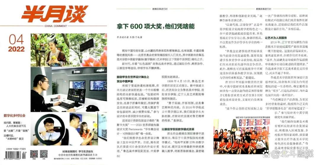 TheOneClubCreativity权威发布艺术类获奖排名中,2022年鲁迅美术学院在大中华区高校排名第一,全球高校排名第十,团队典型事迹被《人民日报》《半月谈》等媒体相继报道。