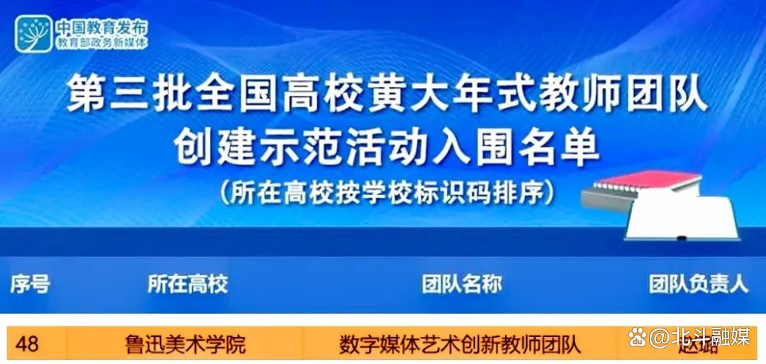 2023年9月,鲁迅美术学院副院长赵璐教授领衔的数字媒体艺术创新团队成功入选“全国高校黄大年式教师团队”,这是该团队在2020年入选“辽宁省黄大年式教师团队”后,凝心聚力,赓续前进,所取得的重大突破。多年来,团队相继摘得国际A设计大奖白金奖、纽约ADC艺术大奖金奖等国际知名专业竞赛最高奖项。